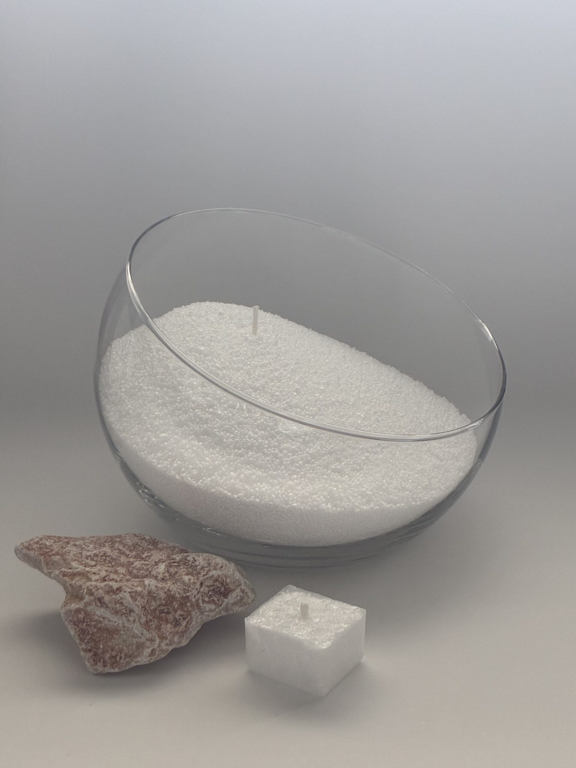 Stačí vybrat nehořlavou nádobu podle nálady – skleničku, misku, vázu nebo hrnek – nasypat DekoPerlu, vložit knot a zapálit.